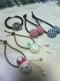 先日に写メをあげたヘアゴムと、画像のミズ作品のリングです♪