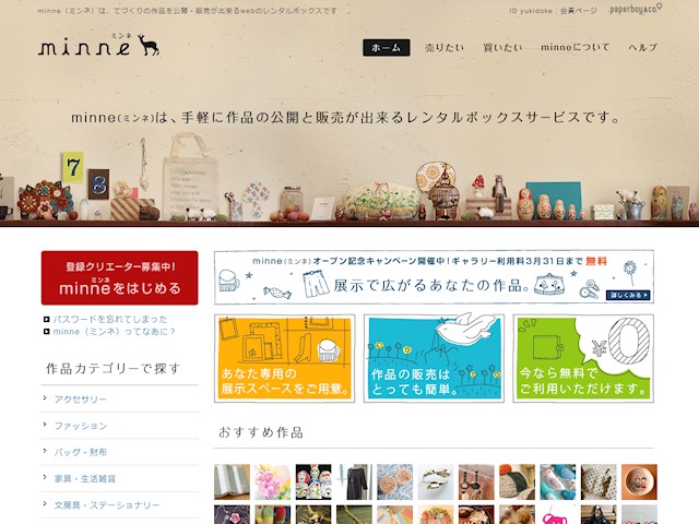 Webのレンタルボックス、minneさんというサイトがオープンしました。